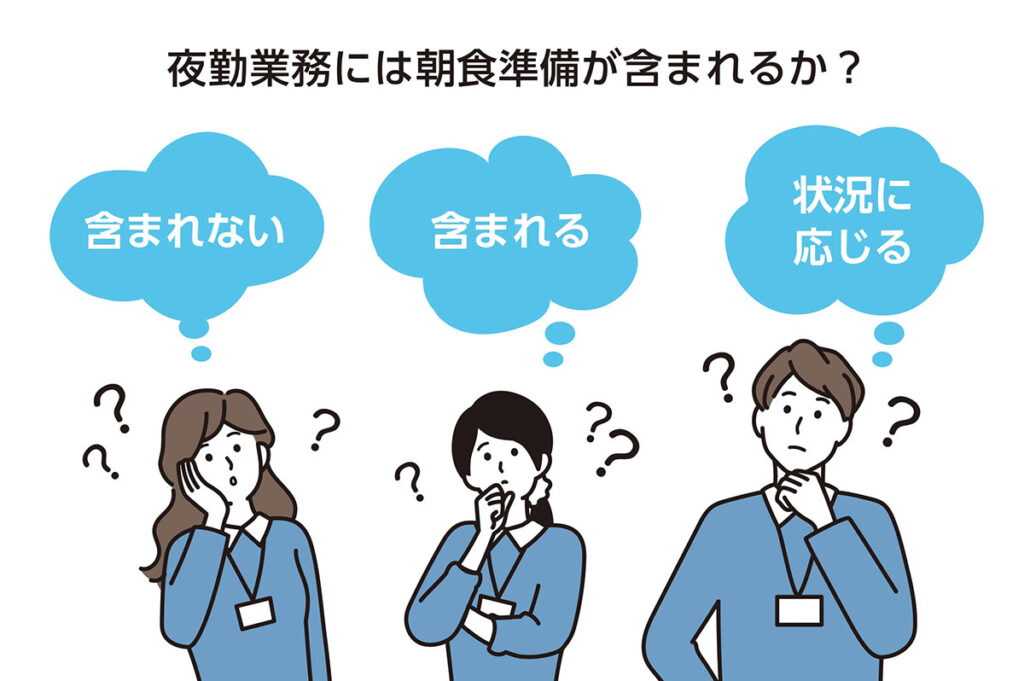 ・夜勤職員によって朝食準備までしている者と